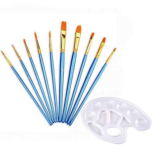 Mudder 10 Pieces Blue Artist Paint Brushes Set Art Painting Supplies with Paint Tray Palette