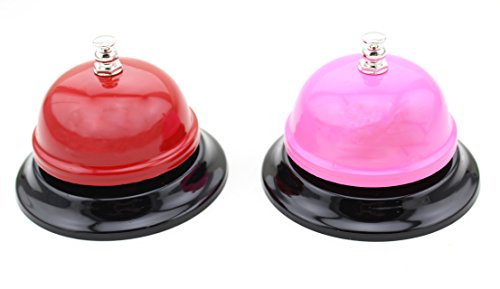 Set of 2 - Colorful Call Bells, 3.38 Inch Diameter, Brushed Nickel - Red & Pink