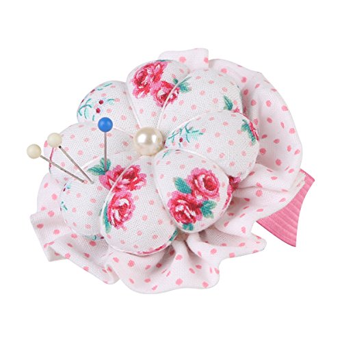 NEOVIVA Flower Shaped Small Pincushions for Sewing with Wrist Band, Style Blossom, Pack of 2, Floral Fuchsia Roses