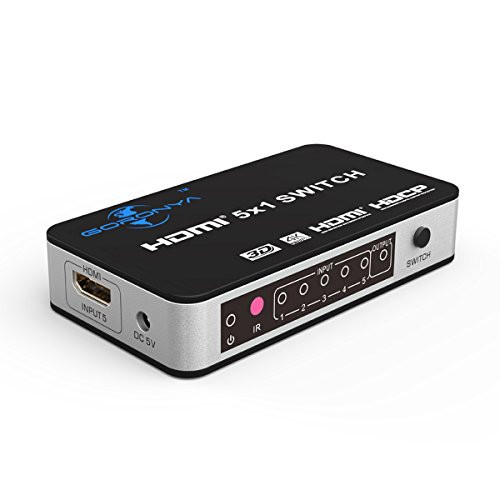 Goronya 4K x 2K Ultra HD 5 Ports HDMI Switch with IR Wireless Remote and Power Adapter