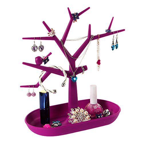 Valdler Tree Design Jewelry Display Tower Necklace Earring Bracelet Holder Organizer Stand Rose
