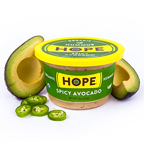 Organic, Non-GMO Healthy Snack--Fresh Gluten Free, Vegan Spicy Avacado Hummus with the High Protein of Hummus and Omega-3 Fatty Acids of Avacado, 15 oz