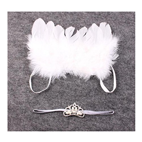 DZT1968 Baby Girl Angel Feather Wing with Headband Costume Photo Prop Outfit White