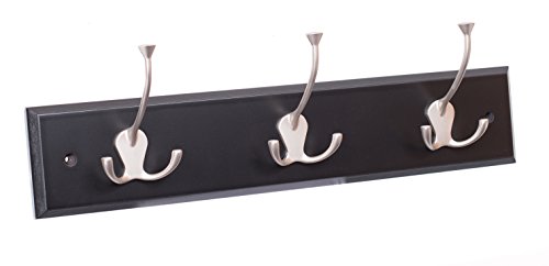 BirdRock Home Tri Hook Coat Rack - 3 Hooks - Wall Mount Hat Rack - Black Finish - Satin Nickel Hooks