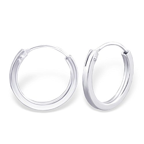 925 Sterling Silver Plain 14mm Endless Hoop Earrings 24344