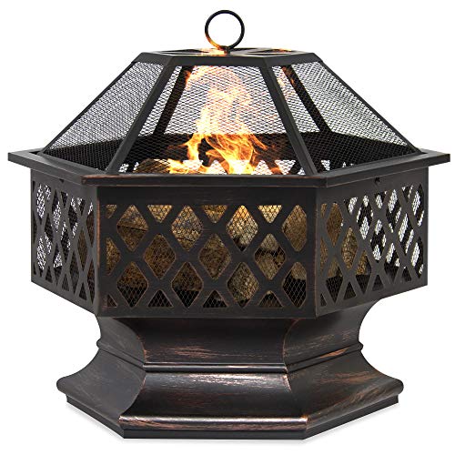 Best Choice Products 24in Hex-Shaped Steel Fire Pit Decoration Accent for Patio, Backyard, Poolside w/Flame-Retardant Lid - Black
