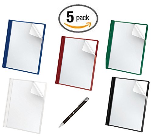 5 Pack Oxford Premium Clear Front Report Covers, Letter Size, Assorted, 5 per Pack (588series) Black, Blue, Green, Red and White with Custom Advantage Black and Chrome Pen