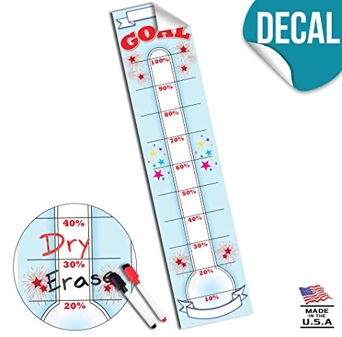 Goal Setting Fundraising Donation Thermometer - 48x11 - Dry Erase Reusable Vinyl Decal Sticker - Fundraiser Milestone Company Goals Chart - Office Wall Temperature Stickers Charts (Light Blue)