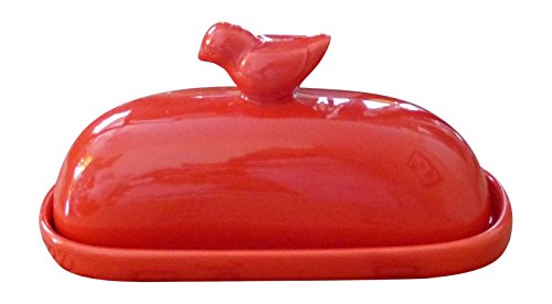 Whimsical Red Bird Ceramic Butter Dish and Lid Cover
