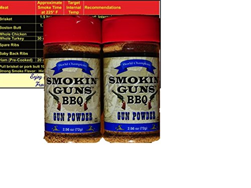Smokin Guns BBQ Gun Powder Rub (Two 2.56 oz bottles) with Complimentary Miniature Meat Smoking Guide Magnet Bundle