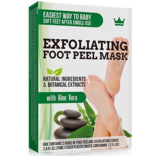 Exfoliating Foot Peel Mask - 2 Pairs of Booties for Smooth and Soft Feet - Peeling Away Rough Heels Dead Skin Cells and Calluses - Aloe Scented Natural Formula for Silky Soft Feet