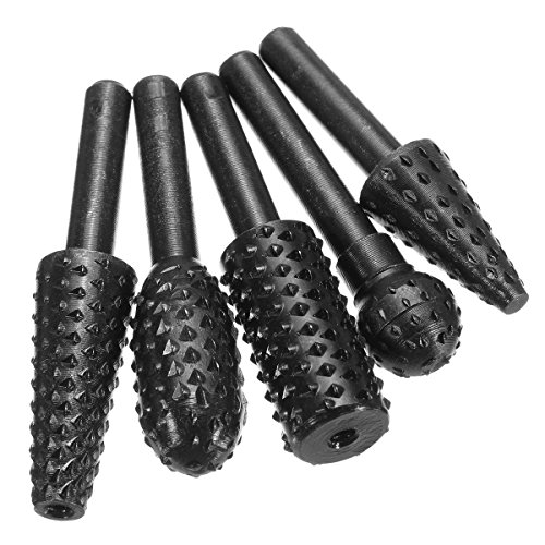 Drillpro Alloy Steel Wood Rasps,5pc Carbon Steel Rotary Rasp Files 1/4'' Shank Die Grinders,Carbide Burrs for Rotary Drill Die Grinder Carving