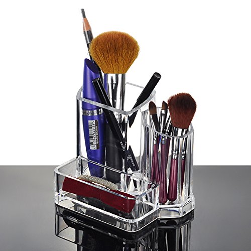 Jmkcoz Acrylic Transparent Makeup Organizer Lipstick Brush Pen Card holder with 3 Compartments