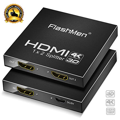 HDMI Splitter 1 in 3 Out - FlashMen 4K 2K Aluminum HDMI Powered Splitter Amplifier HDCP1.4 Supports 3D 4K@30HZ FHD1080P for PS4 PS3 Xbox Fire Stick Roku Blu-Ray
