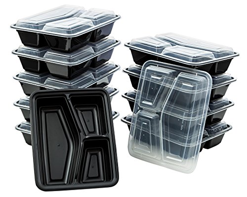 Green Direct 3 Compartment Food Storage Containers with Lids Microwavable Meal Prep Containers / Restaurant Containers Pack of 10
