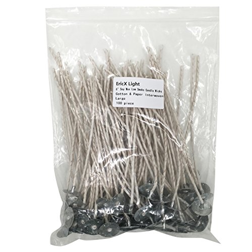 EricX Light 100 Piece 6 inch Low Smoke Soy Wax Natural Candle Wick, Cotton & Paper Interwoven core,Large,For Candle Making,Candle DIY