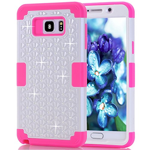 Note 5 Case,SAVYOU Diamond Studded Crystal Rhinestone 3 in 1 Hybrid Shockproof Cover Silicone Silicone and Hard PC Case for Samsung Galaxy Note 5 (White Hot Pink)