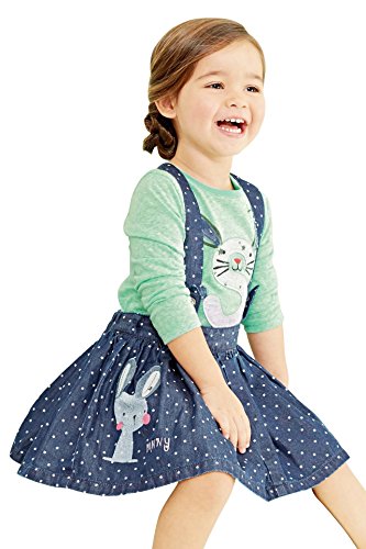 Fairy Wings Little Girl T Shirt and Denim Suspender Skirt Set with Rabbit Applique