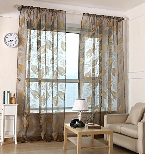 Creazy® 1 PC Leaf Tulle Door Window Curtain Drape Panel Sheer Scarf Valances (Black)