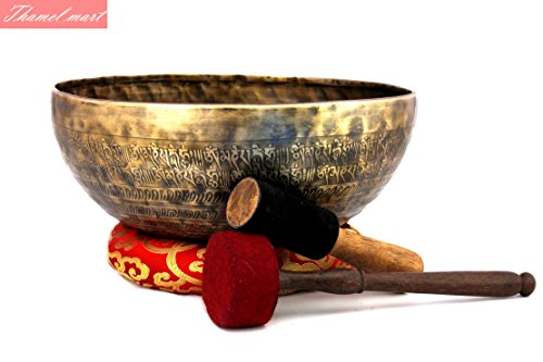 12"Mantra carved singing bowl-Green tara carved singing bowl -Real handmade singing bowl from Nepal-Real antique singing bowl, Made in Nepal