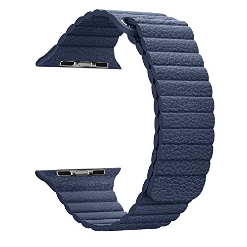 BRG Leather Loop with Adjustable Magnetic Closure Replacement Strap for Apple Watch Series 2 Series 1 Sport and Edition 42mm Medium - Midnight Blue