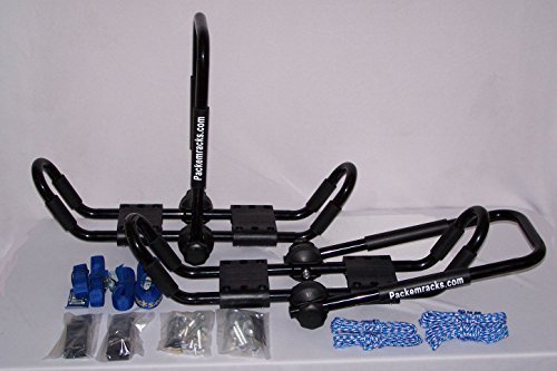 FOLD DOWN Double Satin Black Kayak Roof Mounted J-Style Carrier Rack by Pack'em Racks