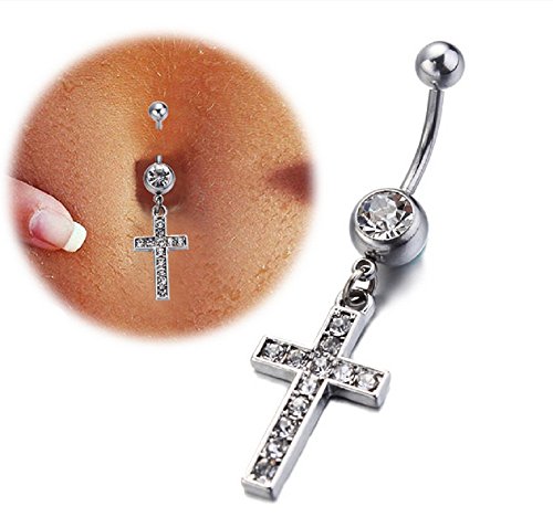 Performa 316L Surgical Steel 14G Cross Clear Crystal Belly Button Ring Body Jewelry Piercing Ring