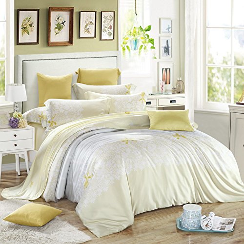 TheFit Paisley Textile Bedding for Adult U188 Light Yellow Duvet Cover Set 100% Tencel, Queen King Set, 4 Pieces (Queen)