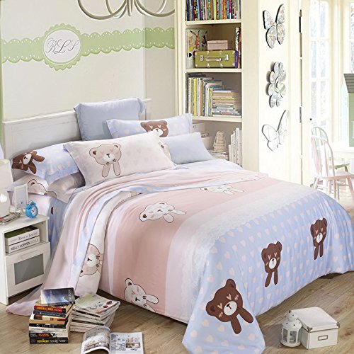 TheFit Paisley Textile Bedding for Adult U207 Pastel Bear Duvet Cover Set 100% Tencel, Queen King Set, 4 Pieces (Queen)
