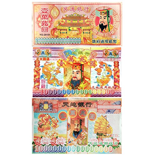ValuedTrade New! 10 Quadrillion Giant Hell Bank Note Set of 3 Joss Paper Incense Paper Ancestor