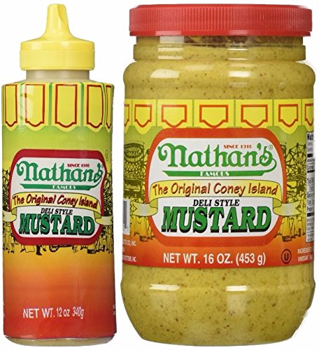 Bundle of 2: Nathan's Original Coney Island Deli Style Mustard and Nathan's Original Coney Island Deli Style Mustard in Squeeze Bottle Total 28 ounces Total