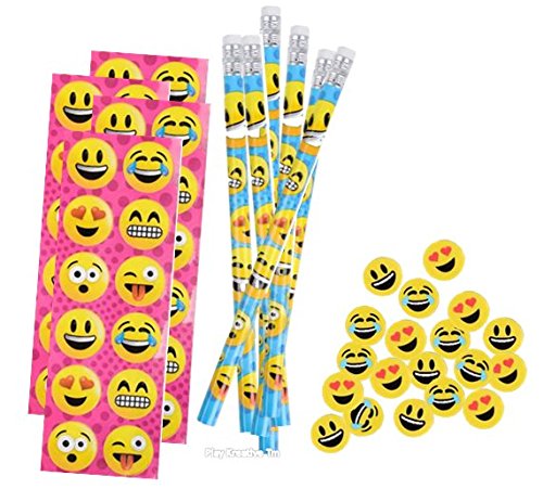 Emoji Stickers, Pencil and Erasers Stationery Sets - Play Kreative TM (EMOJI )