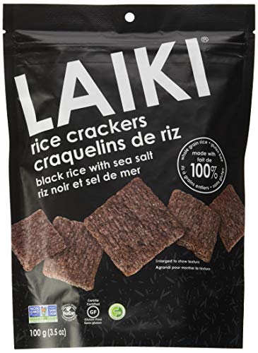 LAIKI Gluten Free Rice Crackers | Gluten Free Snack, Vegan, Non-GMO Verified, FODMAP Friendly | Black Rice, 3.5 Ounce Bag (Pack of 8)