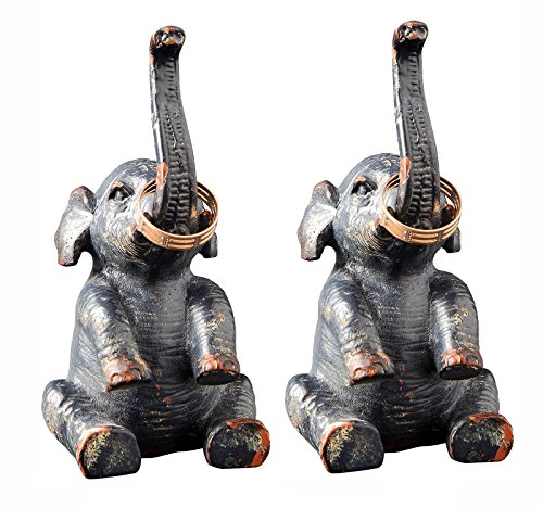 Creative Co-Op Pewter Elephant Ring Holder Set of Two 4.25 Inches Tall by 2.5 Inches Long by 2 Inches Wide