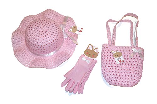 Girls Dress Up Toddler Size Pink Easter Bonnet Hat, Silky Gloves and Purse