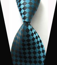 jacob alex #38589 Classic Necktie Black & Blue Plaids WOVEN JACQUARD Silk Men's Suits Tie