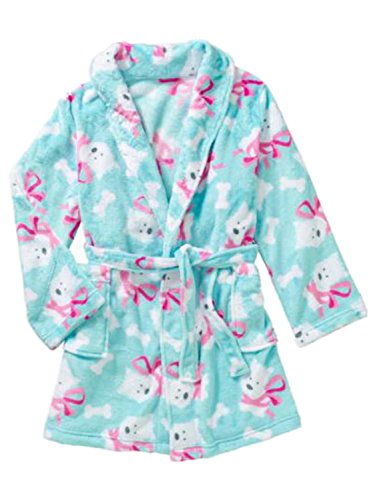 Girls Scottie Dog Plush Fleece Bathrobe Blue Bath Robe House Coat