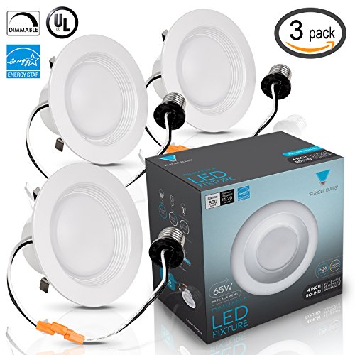 Triangle Bulbs (Pack of 3) 4" LED Downlight, UL and ENERGY STAR, 10W (65W Replacement), 5000K (Daylight White), Retrofit LED Recessed Lighting Fixture, LED Ceiling Light, Dimmable,
