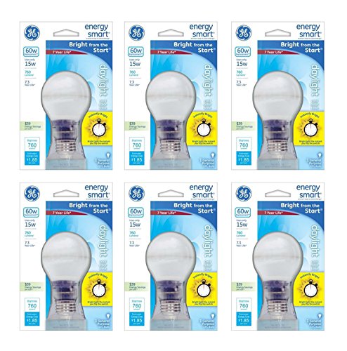 Pack of 6 GE 15W CFL Energy Smart Bulb Equivalent to 60W Daylight Cool Color Tone A19, Standard Medium E26 Base