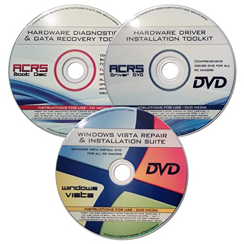 Universal 3 Disc Set For Install, Recovery, & Repair All Windows Vista Versions-Hardware Diagnostics & Drivers