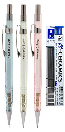 eMicro Newage Jedo Mechanical Pencil M107 Bundle with Lead Refill, 0.5mm, Assorted Colors (3-Pack)