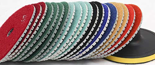 Granite Diamond 4" Inch Polishing Pads Wet/Dry Set of 17+1 Backer Pad FREE SHIP Best Value Concrete Marble Travertine Terrazzo Engineer Stone counter top floor renew Jasper