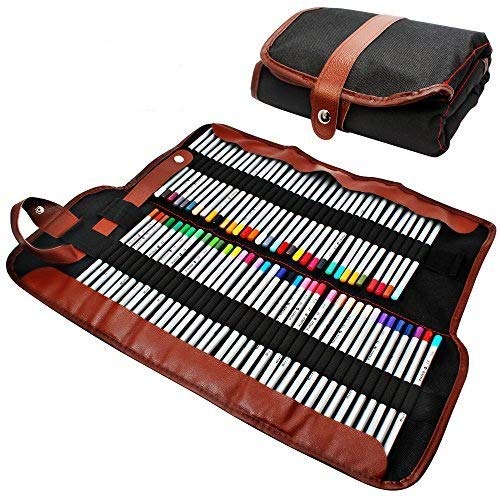 AFUNTA Pencils Holder,72 Assorted Color Pencils Organizer,Roll UP Washable Canvas Pencil Bag for School Office Art(Pencil not Included)