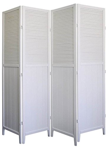 4 Panel Wood Shutter Room Divider Solid Wood, White Finish