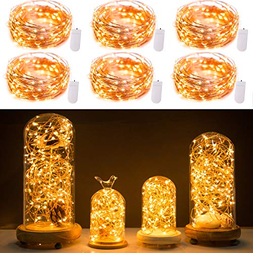 6 Pack Fairy Lights 7 Feet 20 LED Firefly Lights Battery Operated String Lights Copper Wire Starry Moon Lights for DIY Wedding Bedroom Indoor Party Decoration (Warm White)