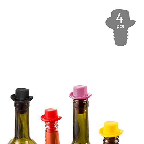 Pack of 4 Assorted Colors Silicone Reusable Wine Bottle Caps/Beer Sealer Cover-Perfect Wine Gift Accessory, Keep Your Wine Fresh & Add a Personalized Wine Bottle Touch with Funny Hat Cap Art