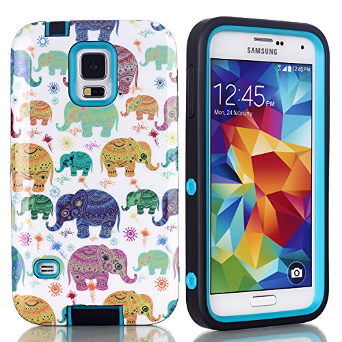 S5 Case,Galaxy S5 Case - SAVYOU Ethnic Elephant Hybrid High Impact Soft TPU + Hard PC Case Cover for Samsung Galaxy S5 i9600(Blue)