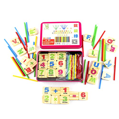 Zerowin Wooden Montessori Toys Number Cards and Counting Rods Teaching Aids Math Sticks with Iron Box, Small 4.9inches