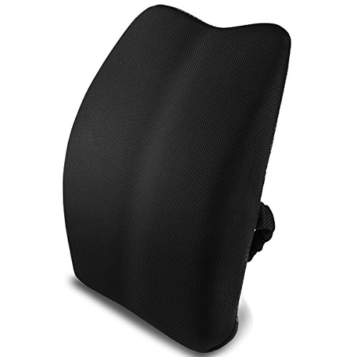 Memory Foam Lumbar Support Back Cushion Pillow for Lower Back Pain Properly Align The Spine, with Insert and Strap for Home Office Chair Sofa Couch Car Black