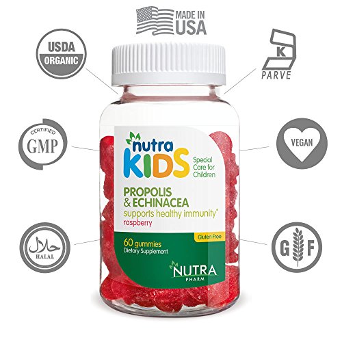 Nutra Kids Propolis & Echinacea Gummies - 60 Raspberry Flavored Gummies - GELATIN FREE - GLUTEN FREE